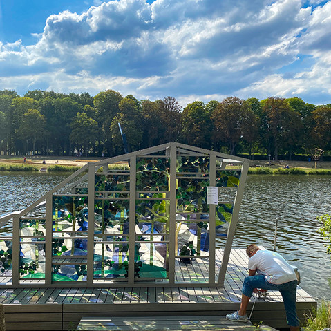 Und jetzt auf zur Bootsanlegestelle Ahoi! Die in der Slowakei beheimatete Künstlerin Ilona Németh hat sich diese Wasserstelle erobert und ihre schwimmenden Gärten pittoresk wie Schiffchen in die Fulda gesetzt – „Future Garden“ und „Healing Garden“ heißen die beiden Gartennachbarinnen.