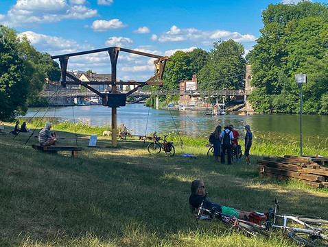 Am Wasser: Die documenta fifteen nutzt die Fulda mit ihren Ufern als Ausstellungsort © fega