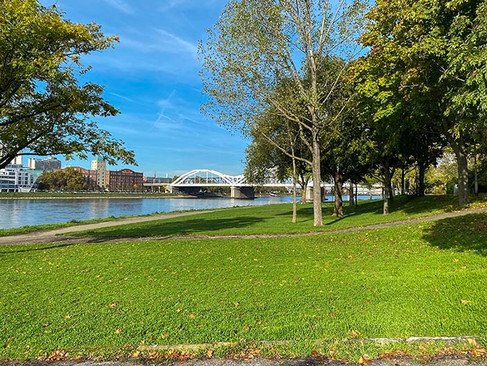 Das hätte sich der Getreidespeicher in den klammen 1950er-Nachkriegsjahren sicher nicht träumen lassen: dass er 70 Jahre später als stylishes Hotel Gästen den Blick auf den Rhein öffnen würde. Und was für einen! Von den Zimmerterrassen führt der Blick geradewegs auf die andere Rheinseite, nach Ludwigshafen.
